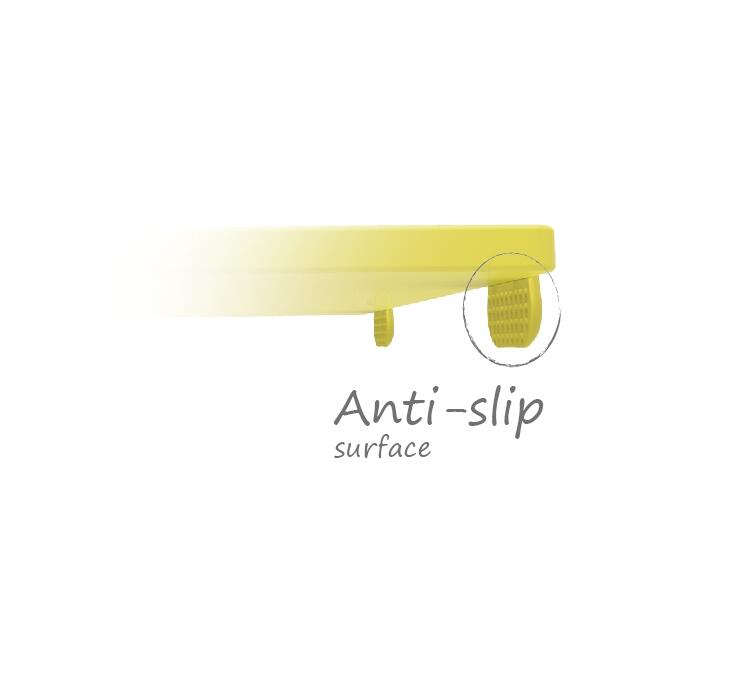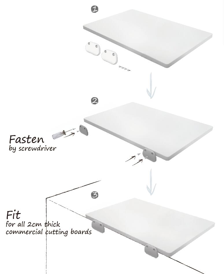 - Rests against the edge of the table to prevent the cutting board from sliding