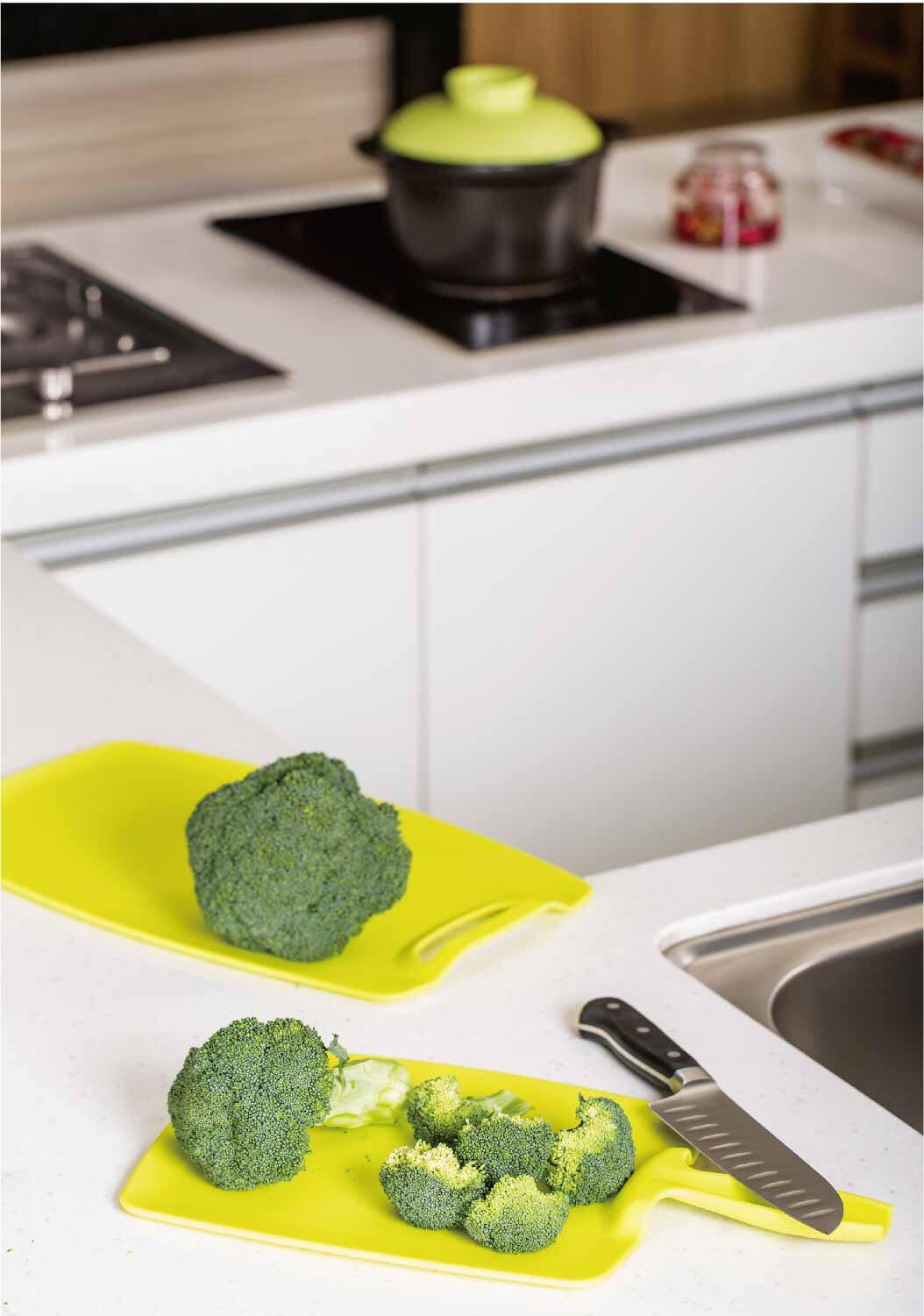 • Curved edge helps collection of liquids or food